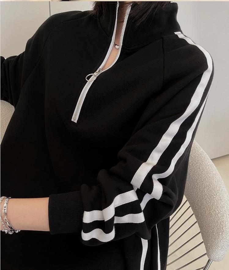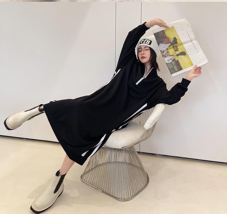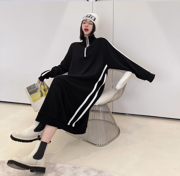 大きいサイズ レディース 秋冬 ハーフジップ ワンピース スポーティ ロング ライン 長袖