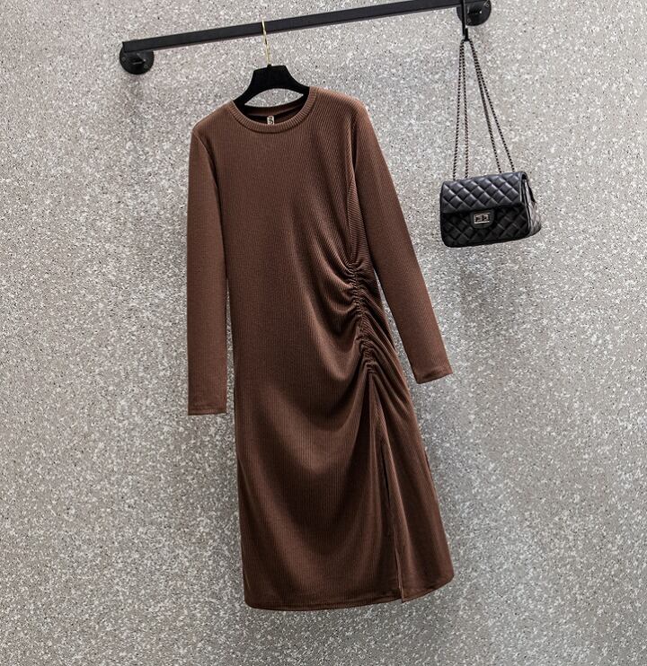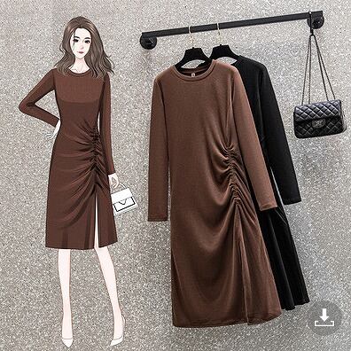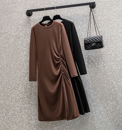 【大きいサイズL-4XL】ファッションワンピース♪モカ/ブラック2色展開◆secmtf-132117