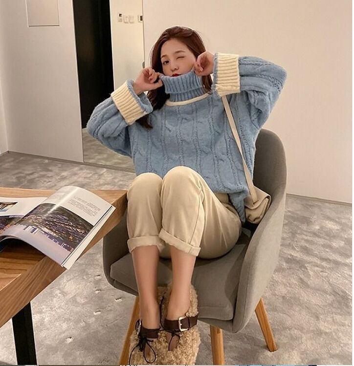 【秋冬新作】ファッション/人気セーター♪ベージュ/ブルー2色展開◆scommo-180667