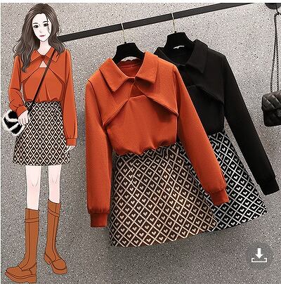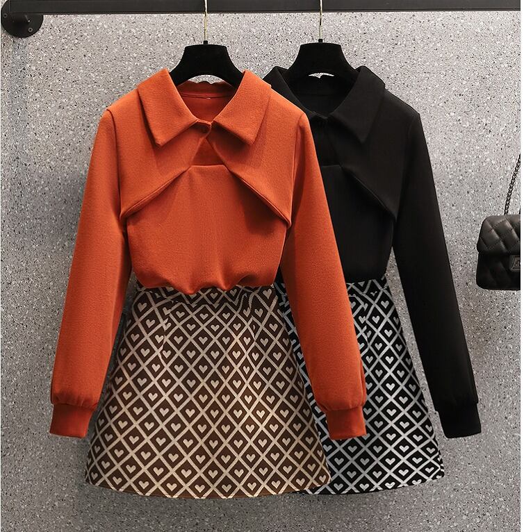 【大きいサイズL-4XL】ファッション/人気/上下セットトップス♪オレンジ/ブラック2色展開◆