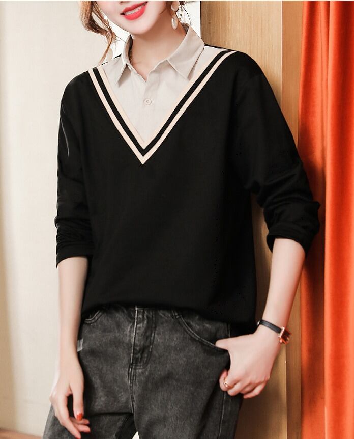 【大きいサイズL-4XL】ファッション/人気トップス♪ブラック/ブルー2色展開◆