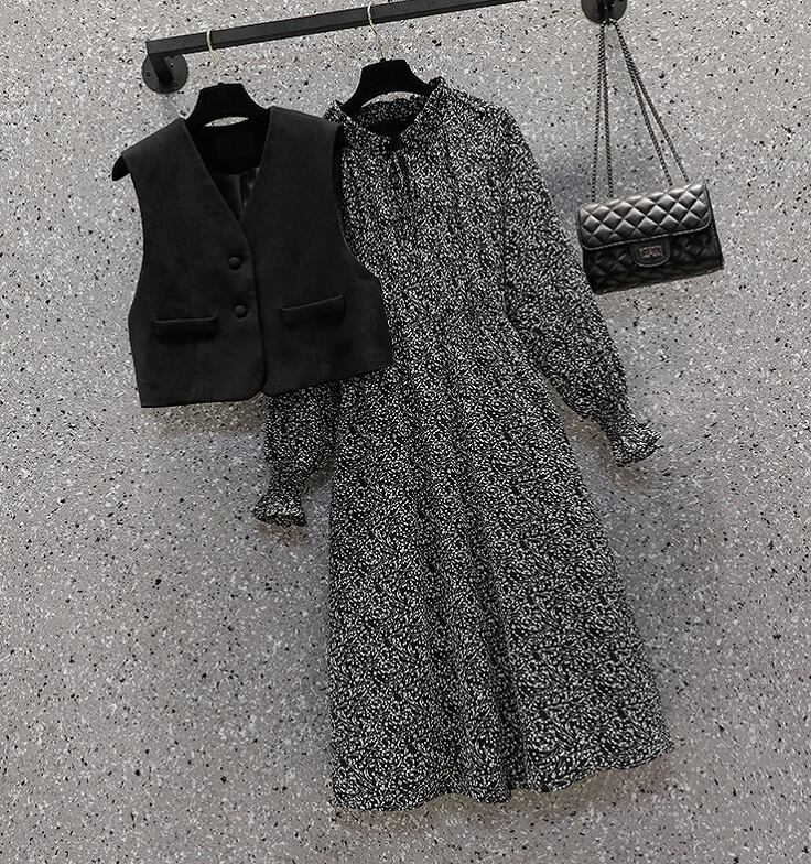 【大きいサイズL-4XL】【秋冬新作】ファッション/人気/2枚セットワンピース