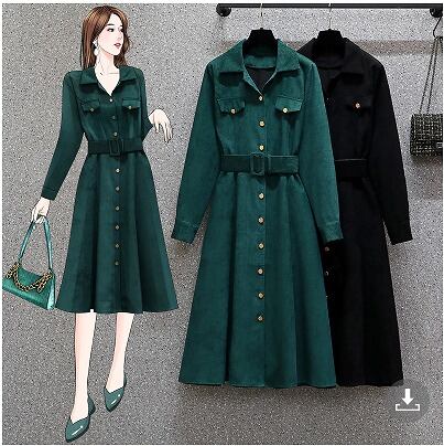 【大きいサイズL-4XL】ファッション/人気ワンピース♪グリーン/ブラック2色展開◆