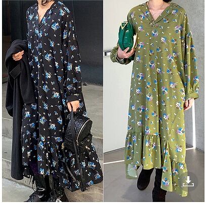 【大きいサイズXL-5XL】ファッション/人気ワンピース♪ブラック/グリーン2色展開◆