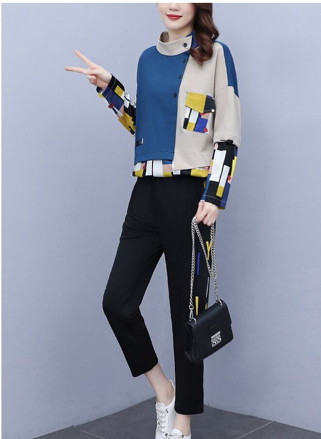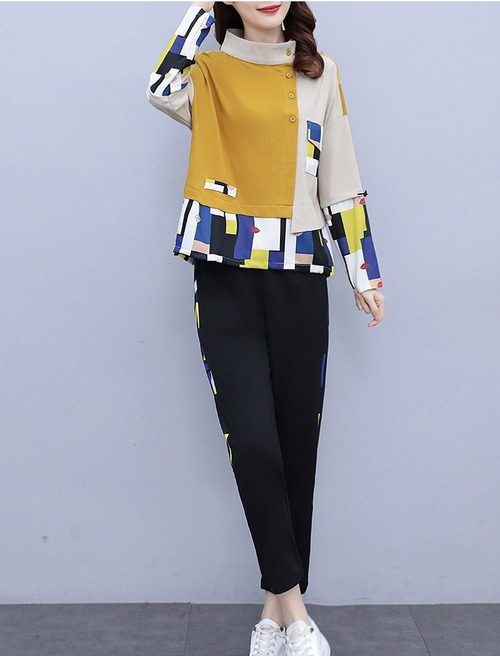 【大きいサイズL-5XL】ファッション/人気/上下セットトップス♪ブルー/イエロー/ブラック3色展開◆sets-158537