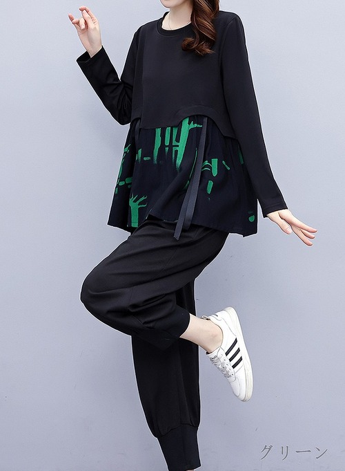 【大きいサイズL-5XL】ファッション/人気/上下セットトップス♪グレー/グリーン2色展開◆