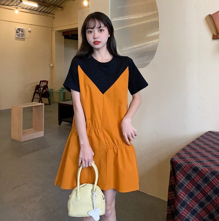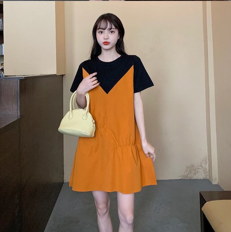 【大きいサイズM-4XL】【春夏新作】ファッション/人気ワンピース♪オレンジ/ブラック2色展開◆schmso-265027