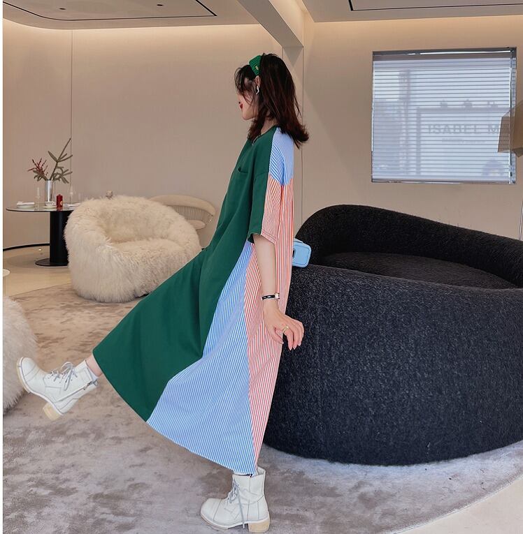 【大きいサイズL-4XL】ファッションワンピース♪グリーン/ブラック2色展開◆#sbiot-150087