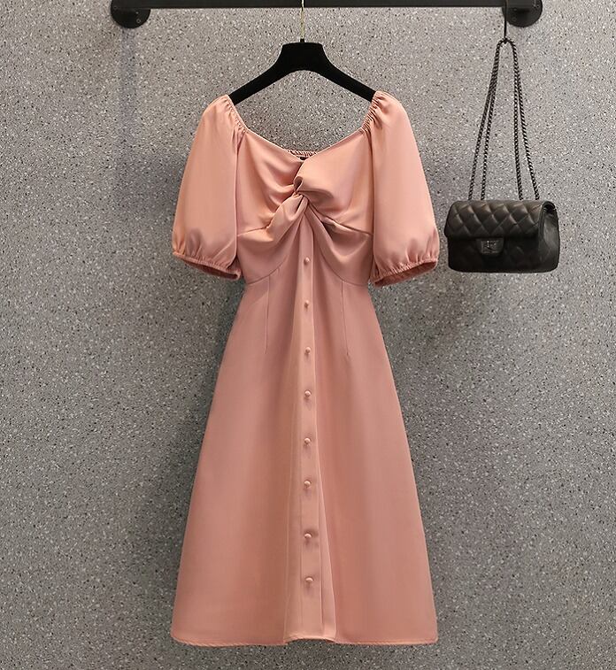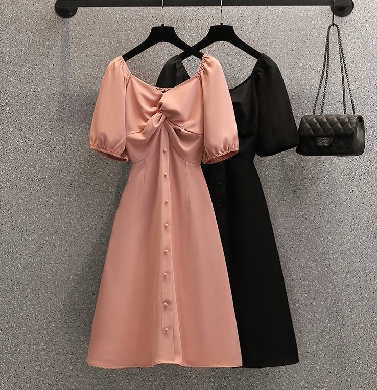 【大きいサイズL-4XL】【春夏新作】ファッションワンピース♪ブラック/ピンク2色展開◆#sedmvm-020117