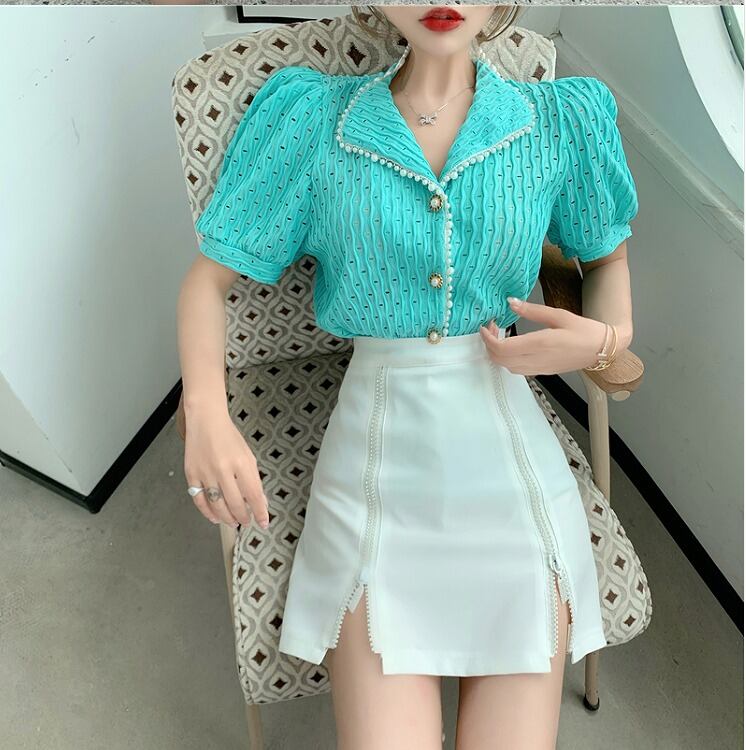 【大きいサイズM-4XL】ファッションワイシャツ♪ホワイト/ブルー2色展開◆#settc-285287