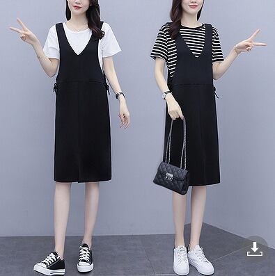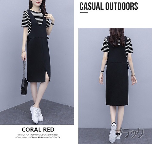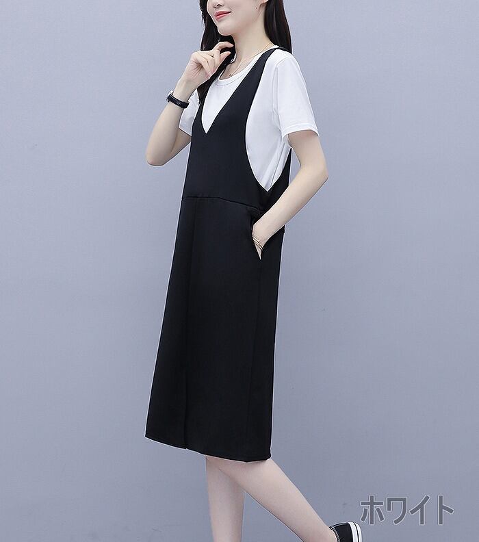 【大きいサイズL-4XL】ファッション/2枚セットワンピース♪ブラック/ホワイト2色展開◆#skfsh-203837