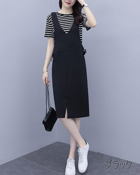 【大きいサイズL-4XL】ファッション/2枚セットワンピース♪ブラック/ホワイト2色展開◆