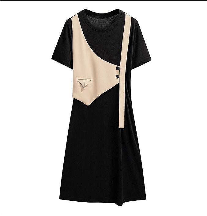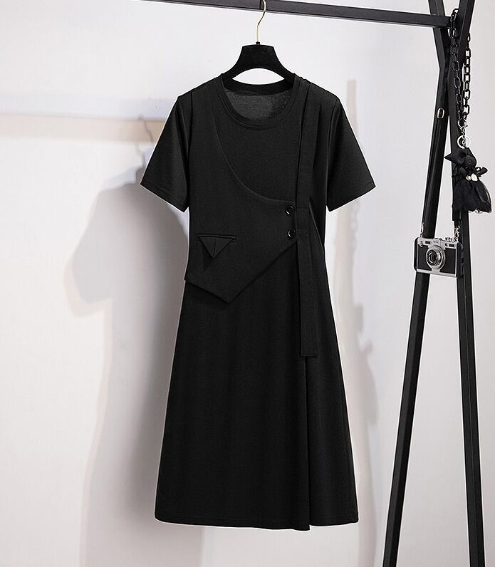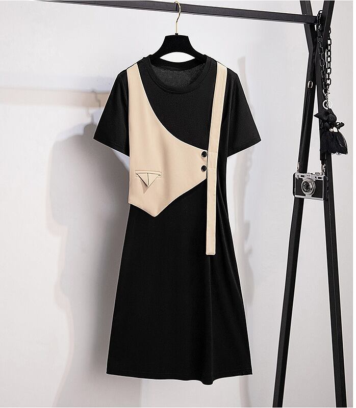【大きいサイズL-4XL】【春夏新作】ファッション/人気ワンピース♪ブラック/アンズ2色展開◆#secmtf-231827