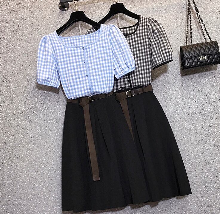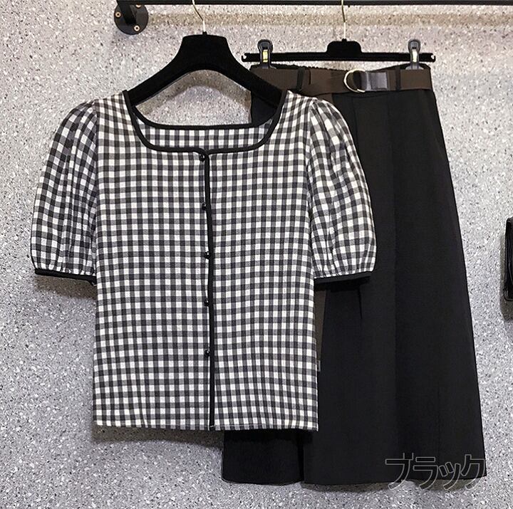 【大きいサイズL-4XL】ファッション/上下セットトップス♪ブルー/ブラック2色展開◆