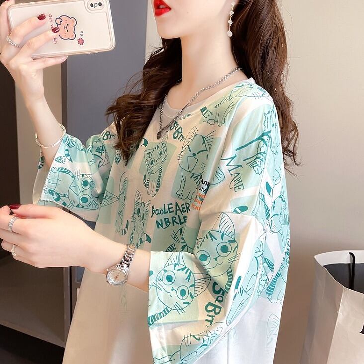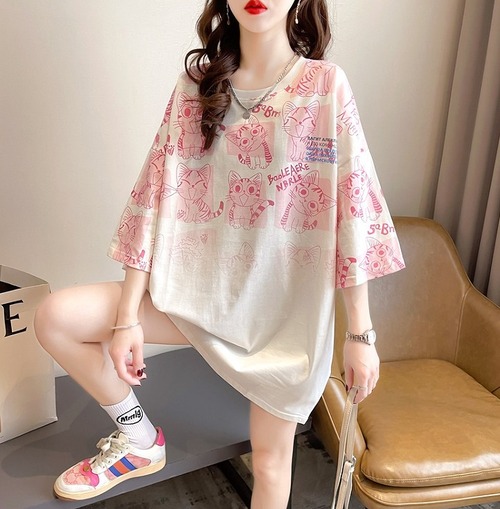 【春夏新作】ファッションTシャツ♪ライトグリーン/ピンク2色展開◆#stbfot-nt5537
