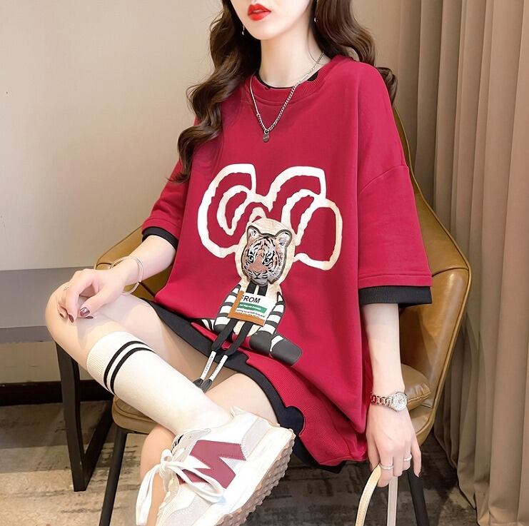 【春夏新作】ファッションTシャツ♪ブラック/ダークアカ2色展開◆#stbfot-nt5637