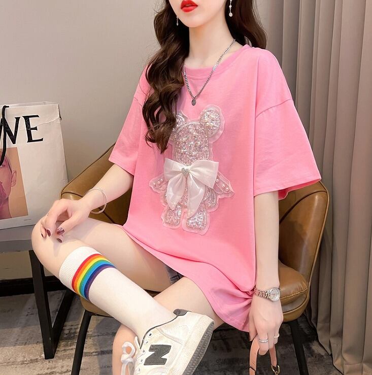 【春夏新作】ファッションTシャツ♪ホワイト/ピンク2色展開◆#stbfot-nt0737