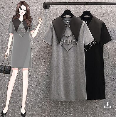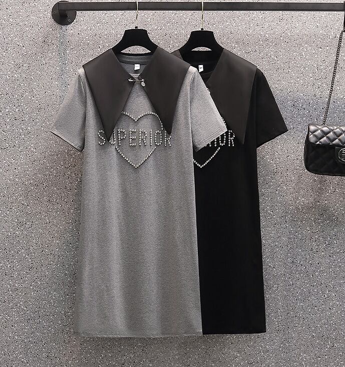 【大きいサイズL-4XL】ファッションワンピース♪ブラック/グレー2色展開◆#skfsh-256067