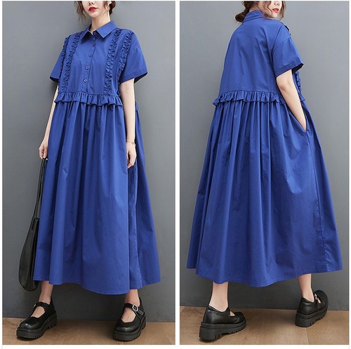 【春夏新作】ファッションワンピース♪ブルー/ブラック2色展開◆#secmio-297237