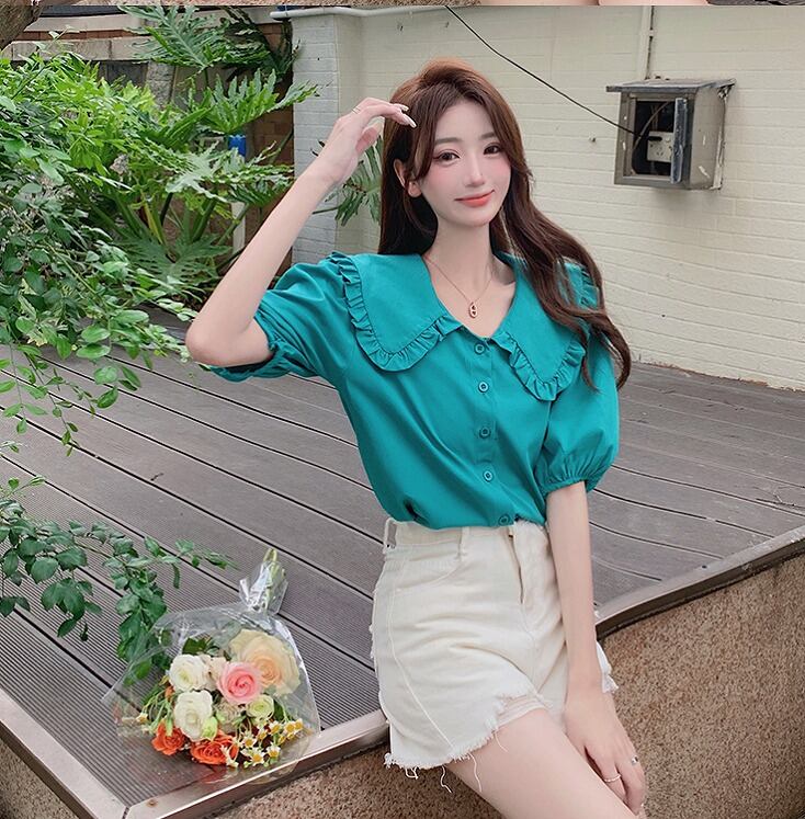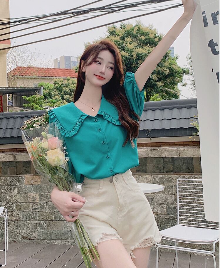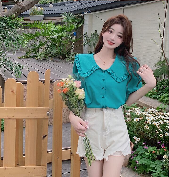 【大きいサイズL-4XL】【春夏新作】ファッションワイシャツ♪ホワイト/グリーン2色展開◆