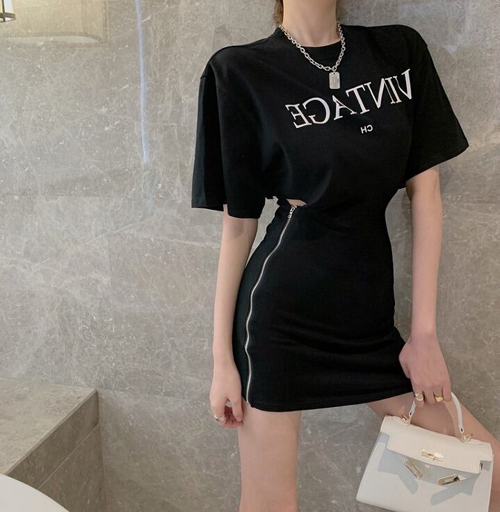 【大きいサイズM-4XL】【春夏新作】ファッションワンピース♪ブラック/ホワイト2色展開◆#sbetmt-297797