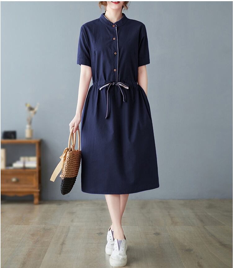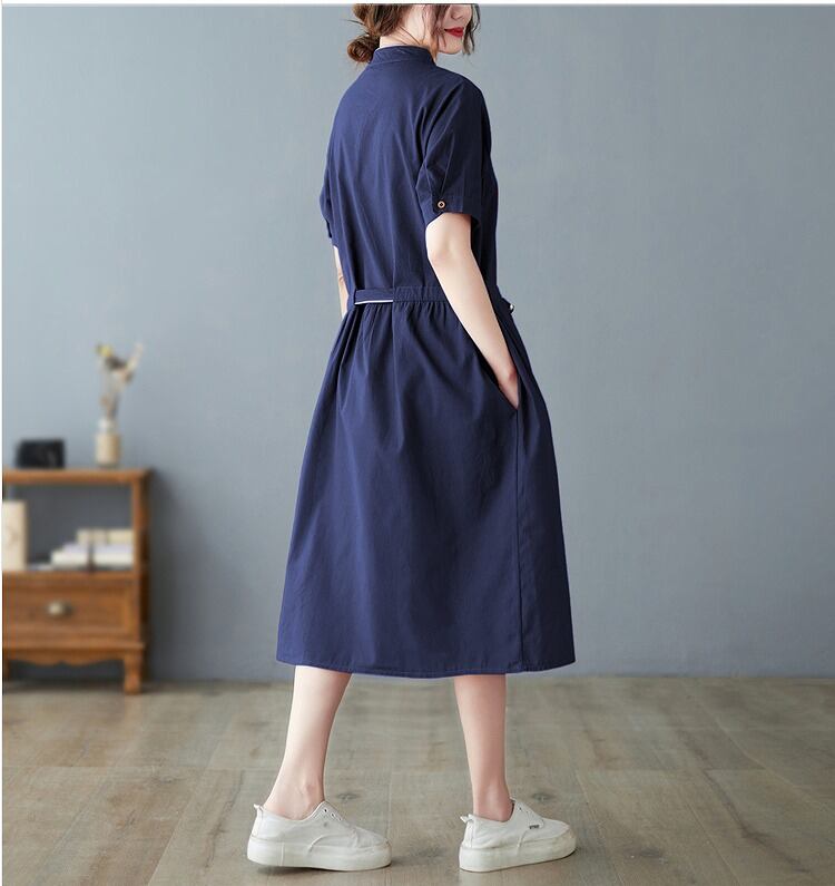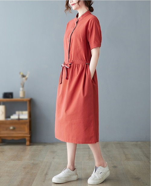 【春夏新作】ファッションワンピース♪アカ/ダークブルー2色展開◆#serfm-239817