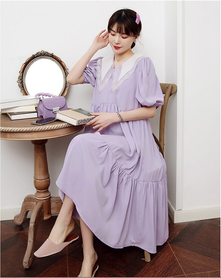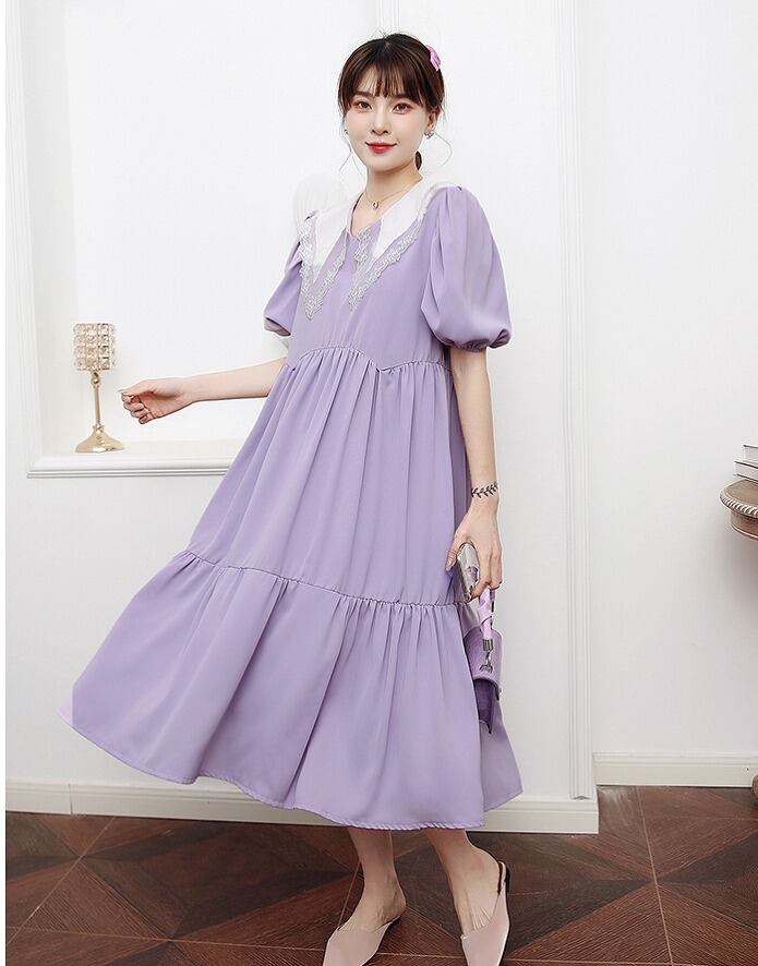 【大きいサイズXL-4XL】【春夏新作】ファッションワンピース♪パープル/ダークブルー2色展開◆#scoosv-230587