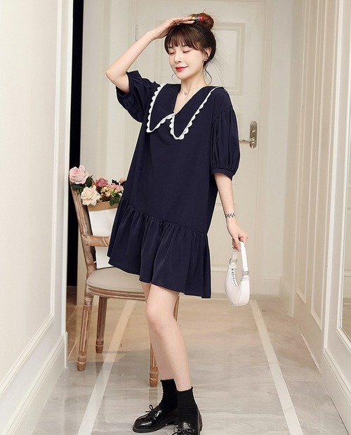 【大きいサイズXL-4XL】【春夏新作】ファッションワンピース♪ピンク/ダークブルー2色展開◆#scoosv-270587