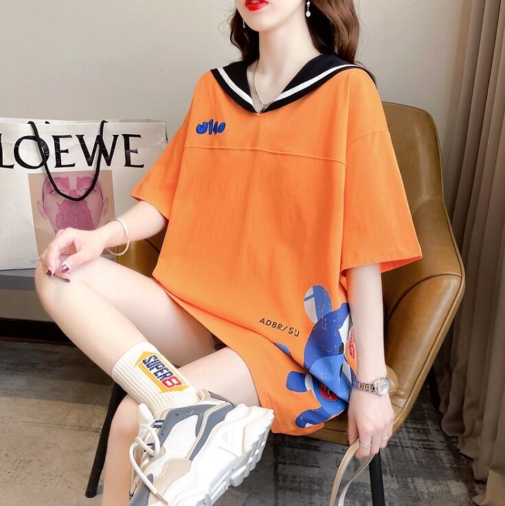 【春夏新作】ファッション/人気Tシャツ♪ホワイト/オレンジ2色展開◆#sebotv-k69147