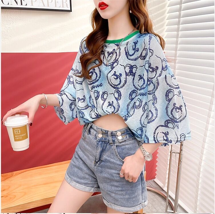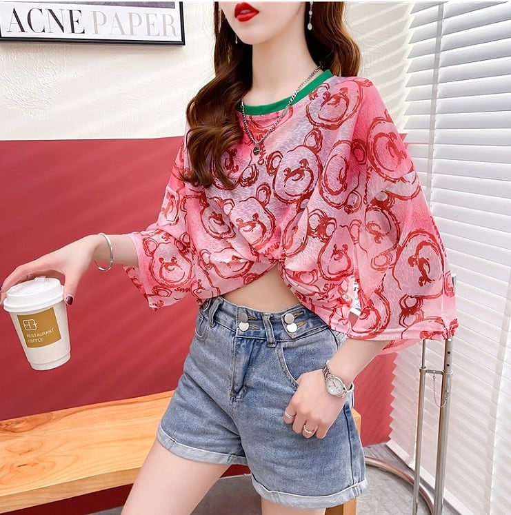 【春夏新作】ファッション/人気Tシャツ♪アカ/ブルー2色展開◆#sebotv-l93227
