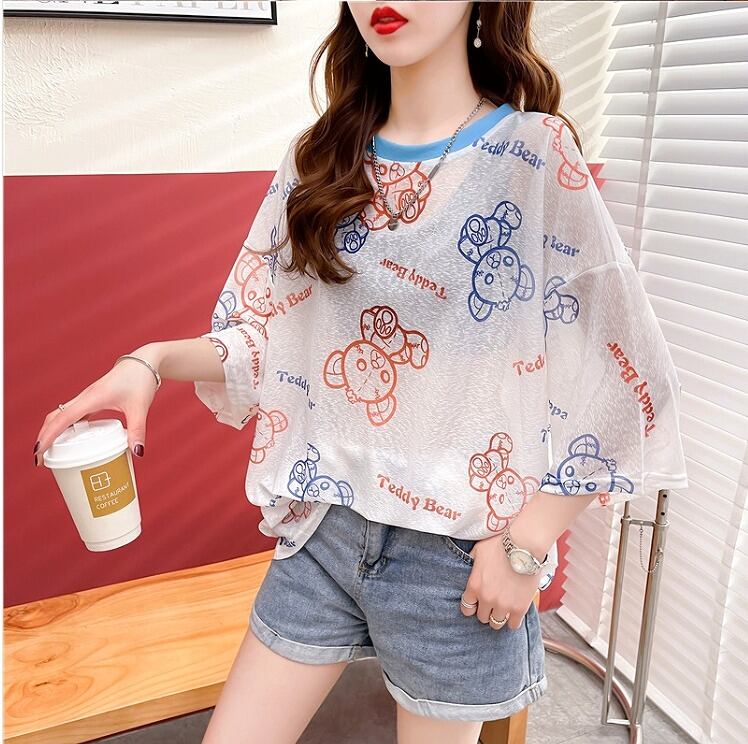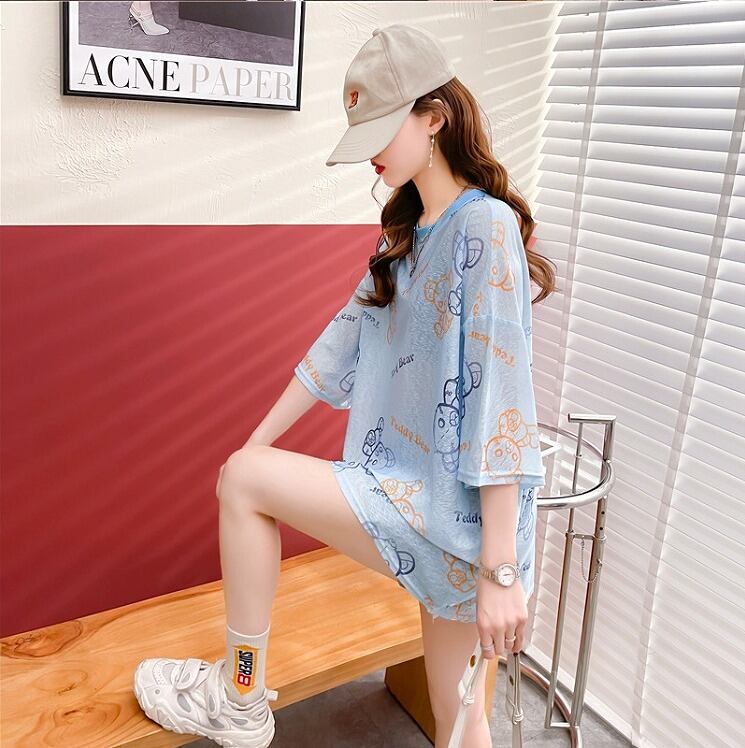 【春夏新作】ファッション/人気Tシャツ♪ホワイト/ブルー2色展開◆#sebotv-l04227