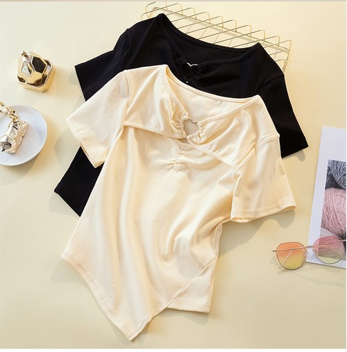 【大きいサイズL-4XL】ファッションTシャツ♪アンズ/ブラック2色展開◆