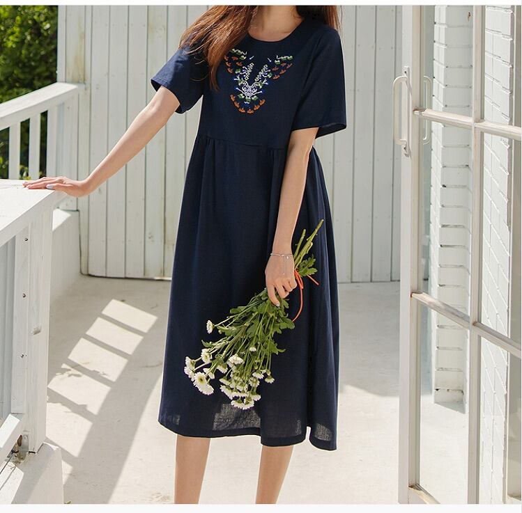 【大きいサイズXL-5XL】ファッション/人気ワンピース♪アンズ/ダークブルー2色展開◆#seemtm-29897
