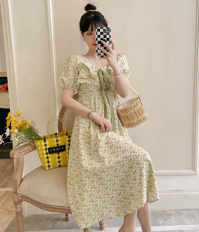 【大きいサイズL-4XL】ファッションワンピース♪ライトグリーン/ライトブルー2色展開◆#semctf-254827