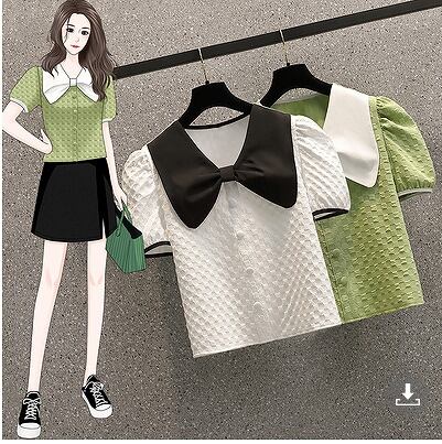 【大きいサイズL-4XL】ファッション/人気トップス♪グリーン/ホワイト2色展開◆