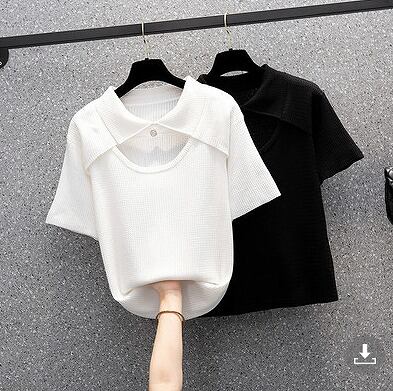 【大きいサイズXL-4XL】【春夏新作】ファッションTシャツ♪ホワイト/ブラック2色展開◆#seroo-216117