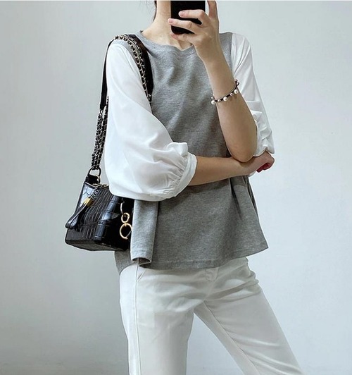 【春夏新作】ファッショントップス♪ブラック/グレー2色展開◆
