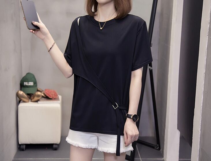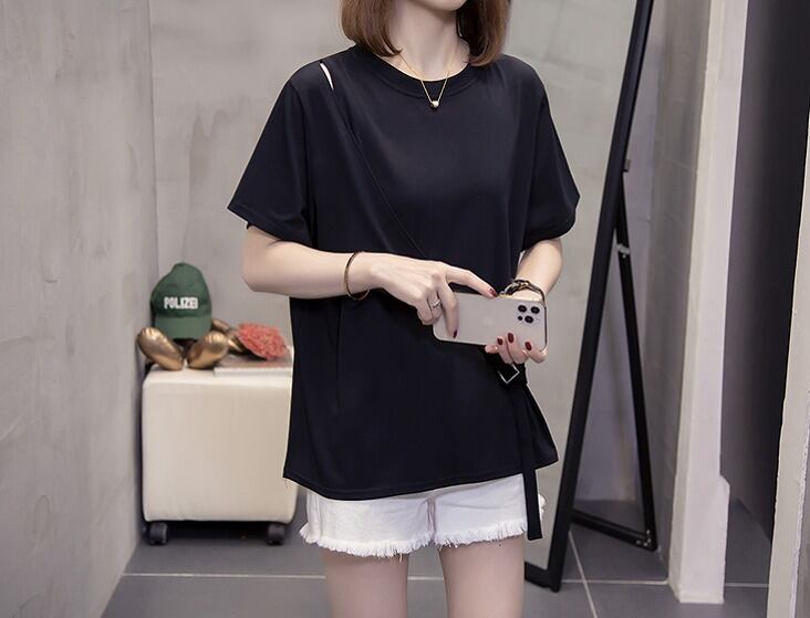 【大きいサイズXL-4XL】【春夏新作】ファッションTシャツ♪アカ/ブラック2色展開◆
