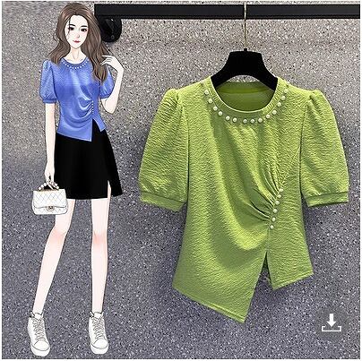【大きいサイズL-4XL】【春夏新作】ファッション/人気Tシャツ♪ブルー/グリーン2色展開◆