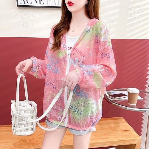【春夏新作】日焼け防止シャツファッショントップス♪ブルー/ピンク2色展開◆#sebotv-m10117
