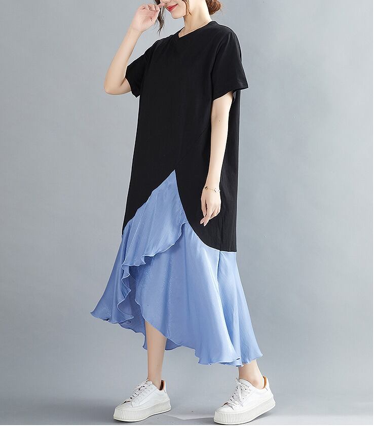 【春夏新作】ファッション/人気ワンピース♪ブルー/アンズ2色展開◆#sebmvo-23087
