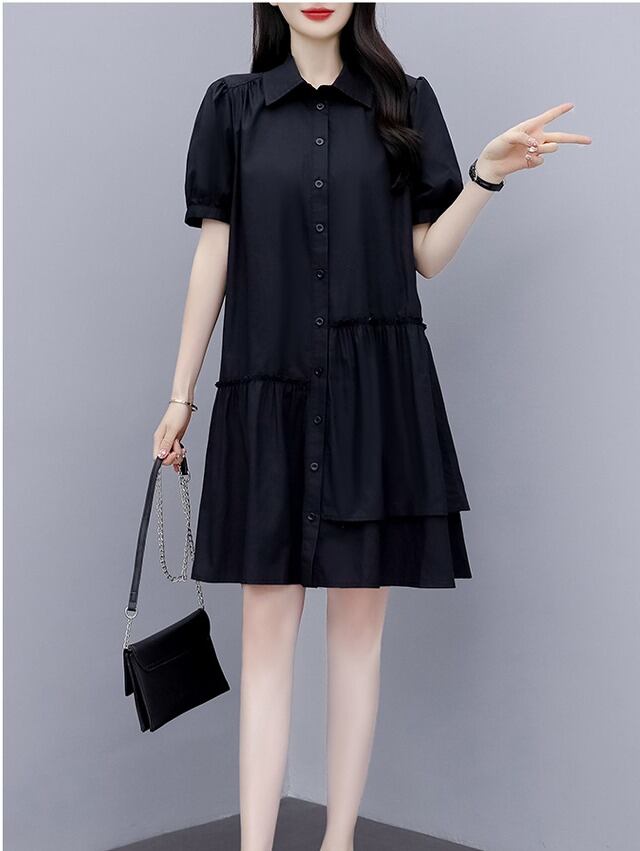 【大きいサイズXL-5XL】【春夏新作】ファッション/人気ワンピース♪ブラック/ブラウン2色展開◆