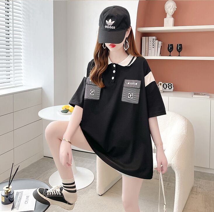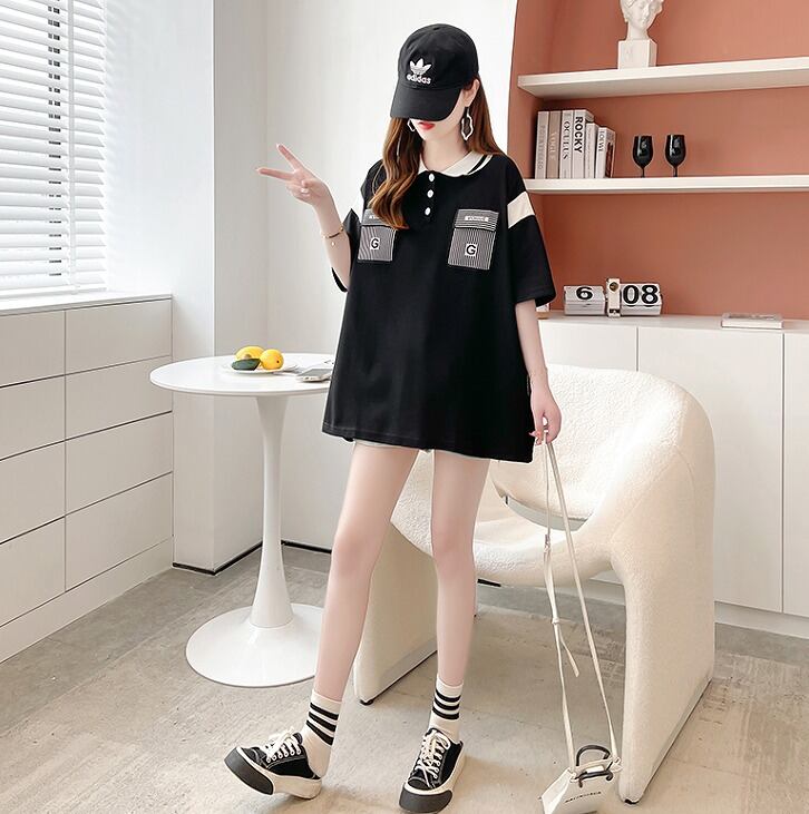 【春夏新作】ファッションTシャツ♪ホワイト/ブラック2色展開◆#settc-233057