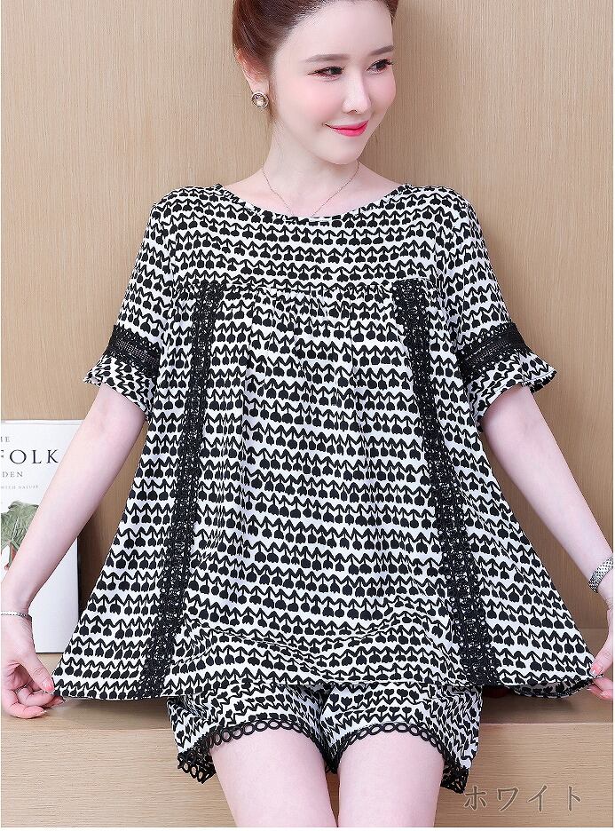 【大きいサイズL-5XL】ファッション/上下セットトップス♪ブラック/ホワイト2色展開◆#sctmcc-274777