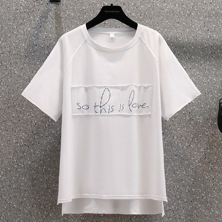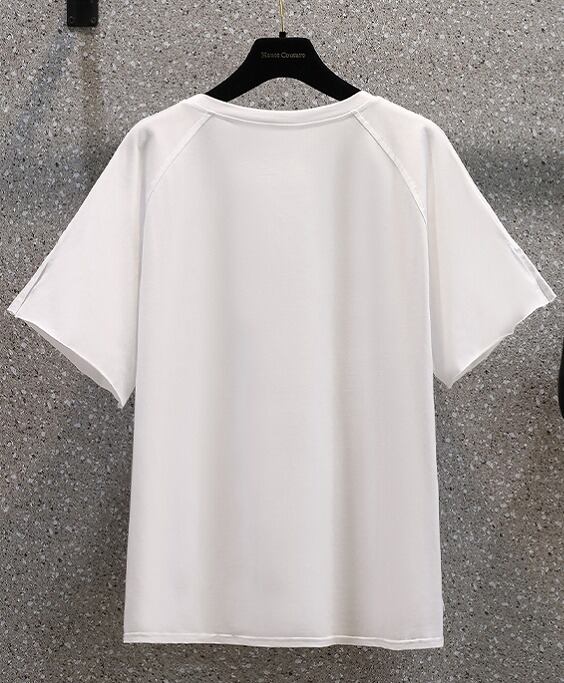 【大きいサイズM-4XL】【春夏新作】ファッションTシャツ♪ホワイト/ピンク2色展開◆#settc-293387