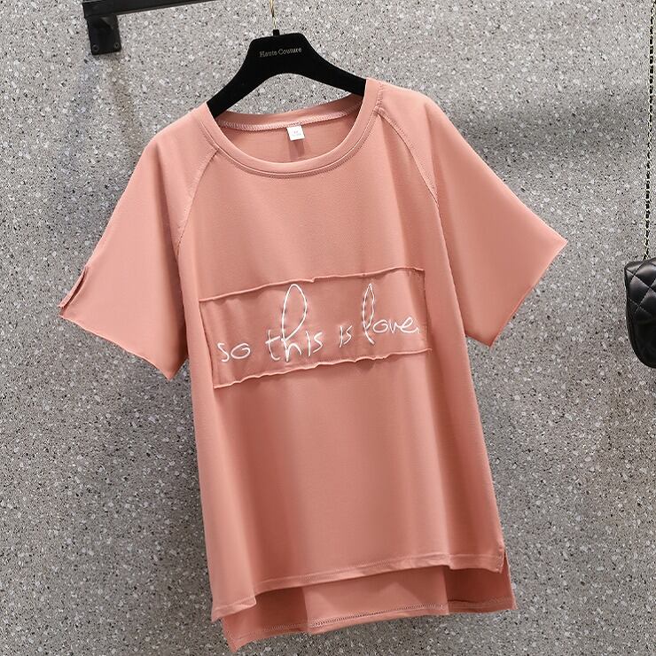 【大きいサイズM-4XL】【春夏新作】ファッションTシャツ♪ホワイト/ピンク2色展開◆