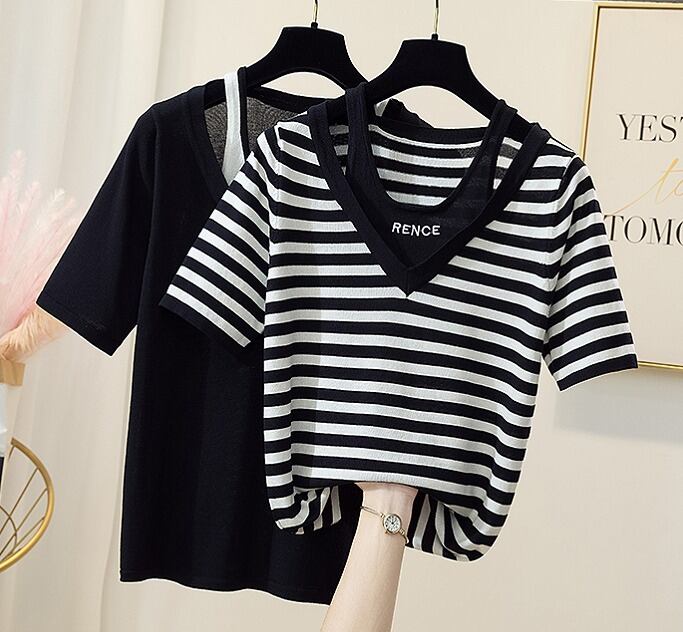 【大きいサイズXL-4XL】ファッションカットソー♪ブラック/ホワイト2色展開◆#scfmic-208067