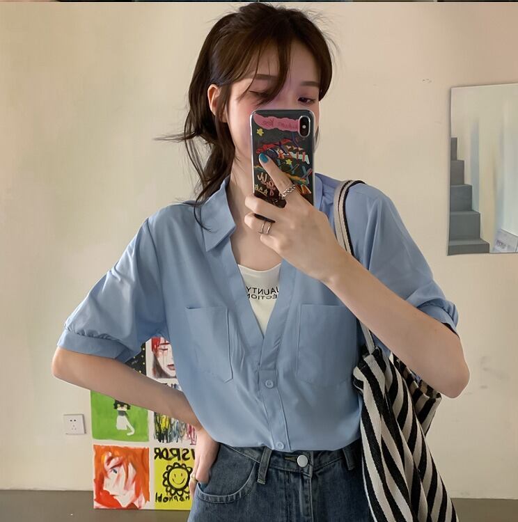 【大きいサイズM-4XL】ファッション/人気トップス♪ブルー/ホワイト2色展開◆