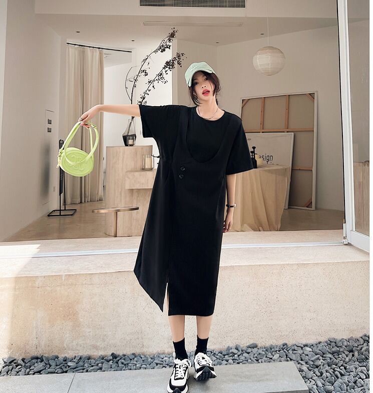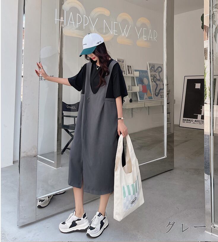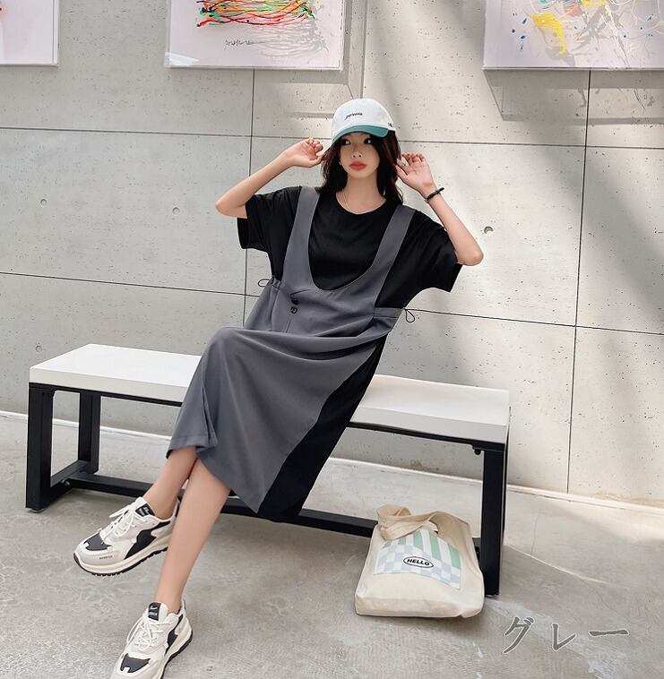 【大きいサイズL-4XL】【春夏新作】ファッションワンピース♪グレー/ブラック2色展開◆#sbiot-233557