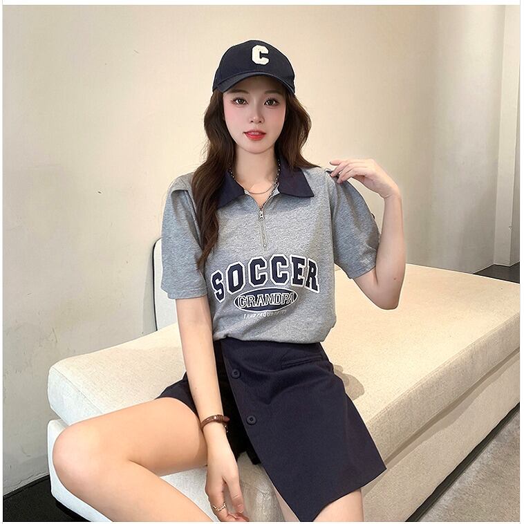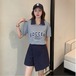 【大きいサイズL-4XL】【春夏新作】ファッション/上下セットトップス♪ブルー/グレー2色展開◆